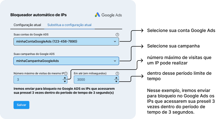 3. Selecione sua conta do Google Ads e a meta de conversão