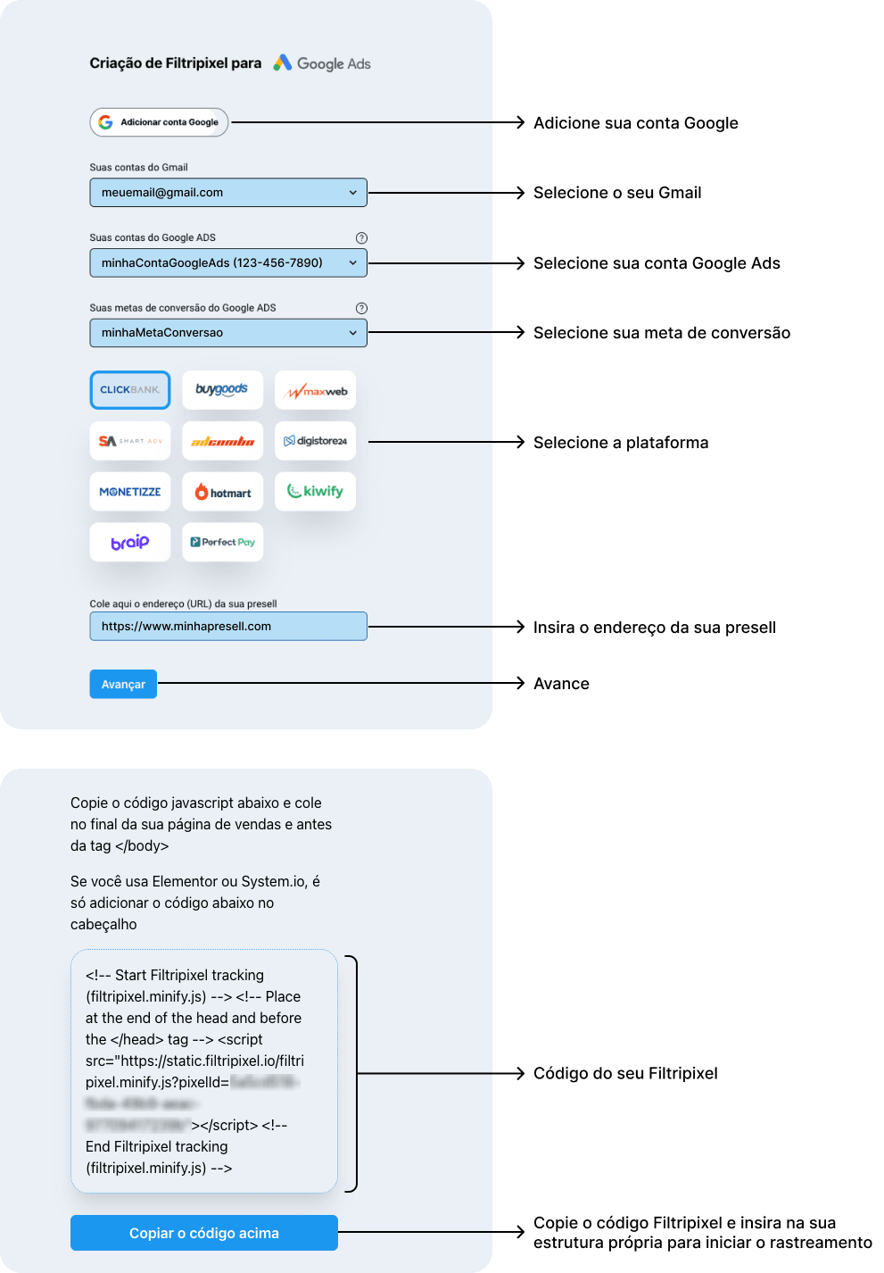 Com Filtripixel, avance para um marketing de afiliados inteligente. Oferecemos automação na marcação de pixel, cortando processos manuais. Mais simples, eficaz e econômico que concorrentes como ClickMagick. Prepare-se para otimizar campanhas, aumentar visibilidade e lucros!